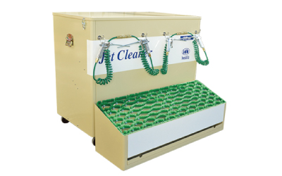 公共の場を汚さないためのエチケットとして定番のクリーナー。用途に応じて水洗い機能を追加したり、設備に直接備え付けることも可能なエアジェットクリーナーです。